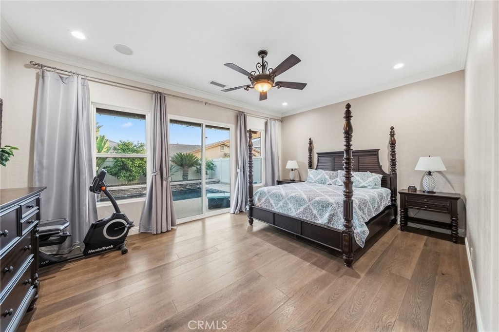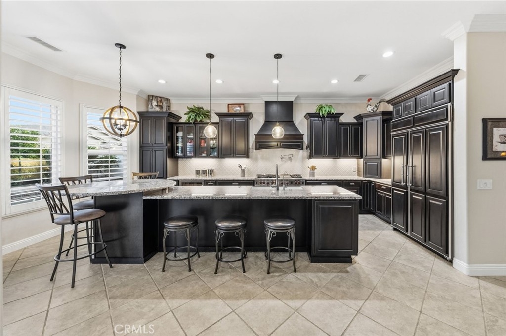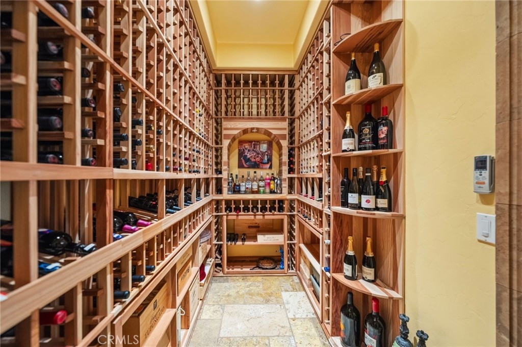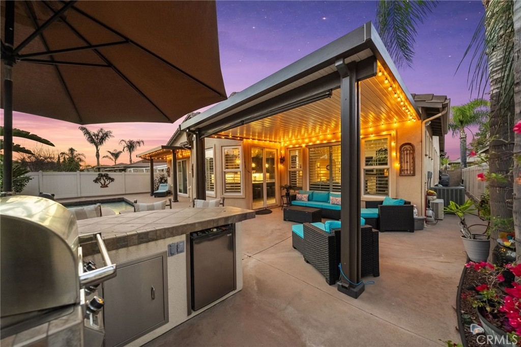 A beautiful and rare opportunity to purchase a meticulously cared-for single-story pool home, proudly maintained by its current owners. Offering approximately 3,000 square feet, this thoughtfully designed home features 4 bedrooms and 3 full bathrooms with a highly functional floorplan. As you enter the home, three bedrooms are positioned toward the front of the property, one of which is currently set up as a private office, perfect for working from home. The home offers multiple living and entertaining spaces including a welcoming living room, formal dining room, and a spacious family room that flows seamlessly into the gourmet kitchen. The kitchen is a chef’s dream, complete with top-of-the-line appliances, rich cabinetry, custom lighting, and a large island with a built-in table and bar-height seating—perfect for gathering and entertaining. For wine enthusiasts, the home features a custom wine cellar with its own dedicated mini-split AC system to maintain ideal temperatures year-round, offering storage for approximately 575 bottles with display shelving. Privately situated on the opposite side of the home, the expansive primary suite offers direct backyard access and a beautifully appointed bathroom with granite counters, a large walk-in shower with dual shower heads, and a spacious walk-in closet with custom built-ins and center island. Additional upgrades include crown moulding, plantation shutters, upgraded lighting and fixtures, soft-close cabinetry, LED lighting, and engineered wood and tile flooring throughout with no carpet. The inviting family room showcases a stacked stone fireplace, built-in entertainment center, and surround sound speakers. The garage features epoxy flooring and built-in cabinets, while the oversized laundry room includes additional cabinetry and a utility sink. The home also includes owned solar panels and a water softener system. Step outside to an entertainer’s backyard featuring a sleek Pebble Tec saltwater pool and spa with waterfalls and stacked stone accents, a solar cover, newer pump, and Jandy remote controls. The outdoor space also includes a built-in barbecue island with stainless steel grill and mini fridge. Located on a quiet cul-de-sac in desirable South Temecula within the Great Oak School District and just minutes from shopping, dining, and Temecula’s award-winning wineries. With low HOA and pride of ownership throughout, this rare single-story pool home is truly a standout. Welcome Home!